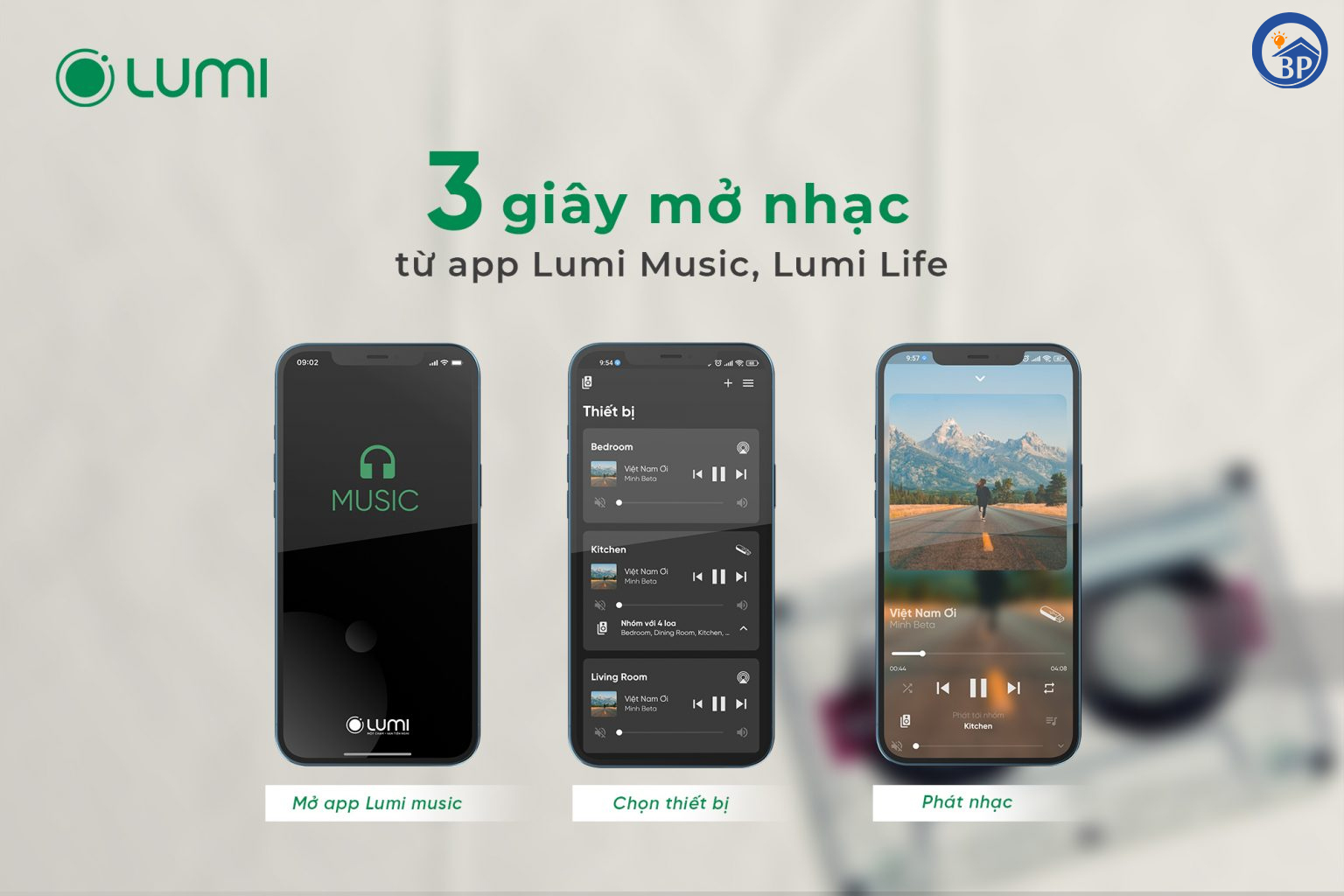 3 giây mở nhạc từ app Lumi Music, Lumi Life