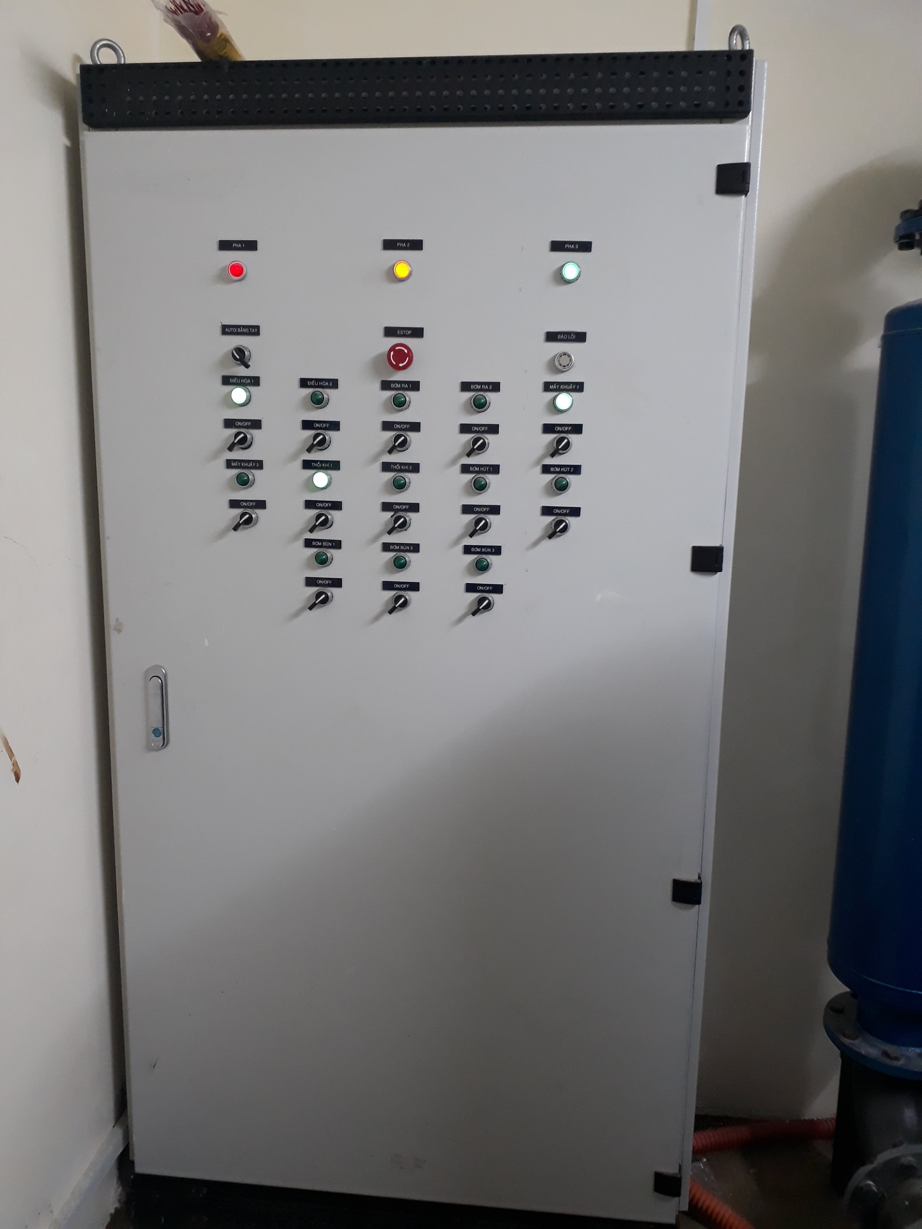 - Tủ điện điều khiển các bơm xử lý nước thải để duy trì nồng độ pH của nước đầu ra đạt pH=7-8.