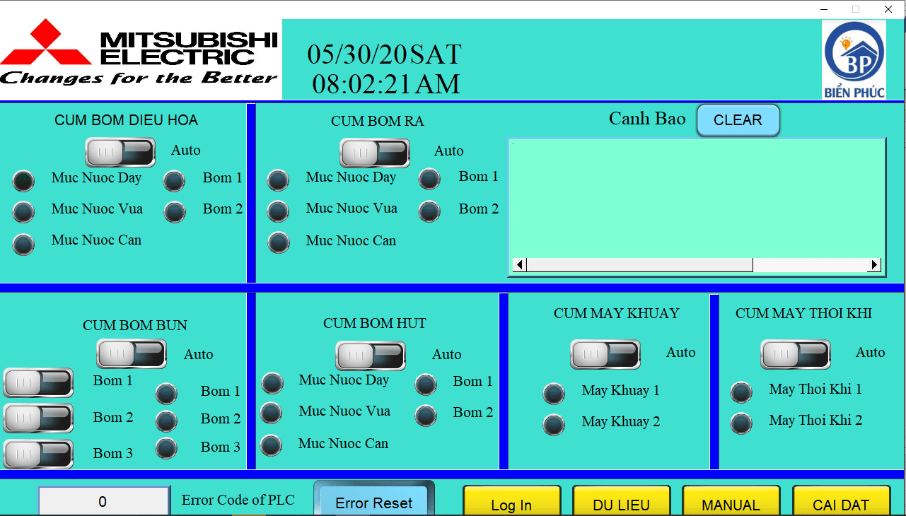 - Bơm, xử lý nước thải được thực hiện liên tục theo hoạt động của người vận hành cài đặt trước.