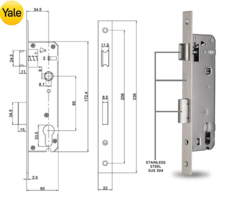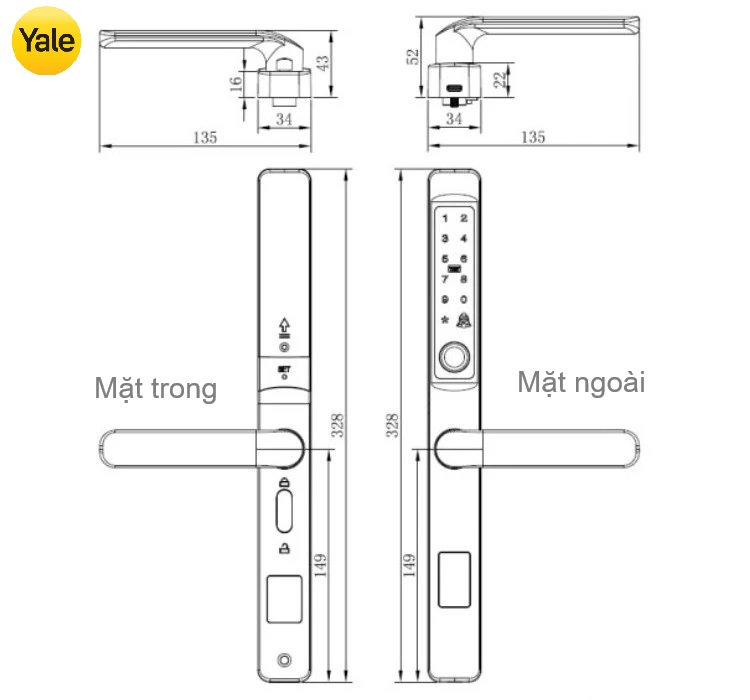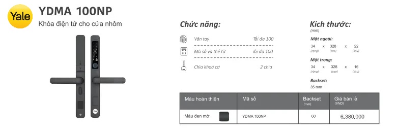 KHÓA CỬA NHÔM YALE YDMA 100NP