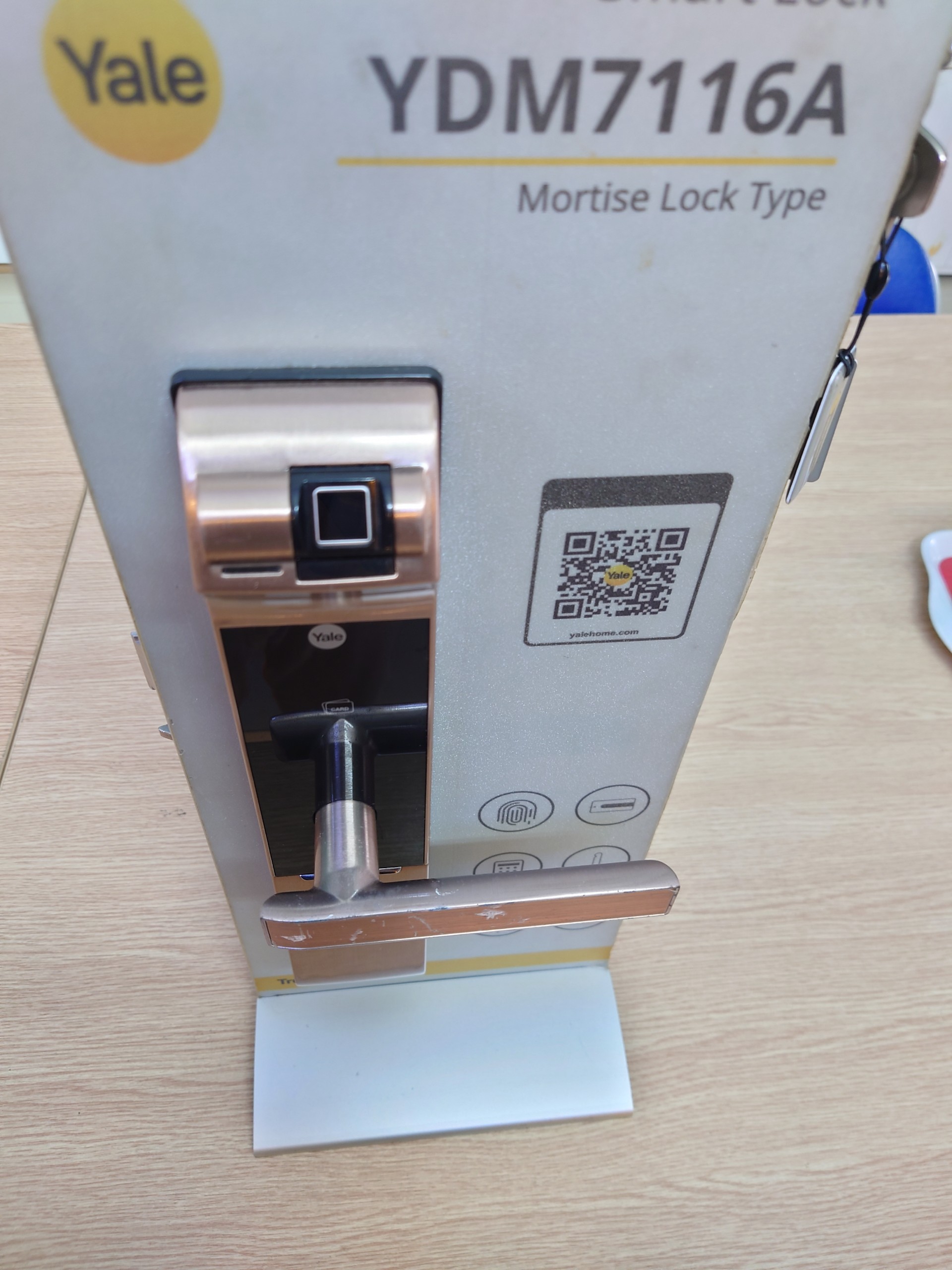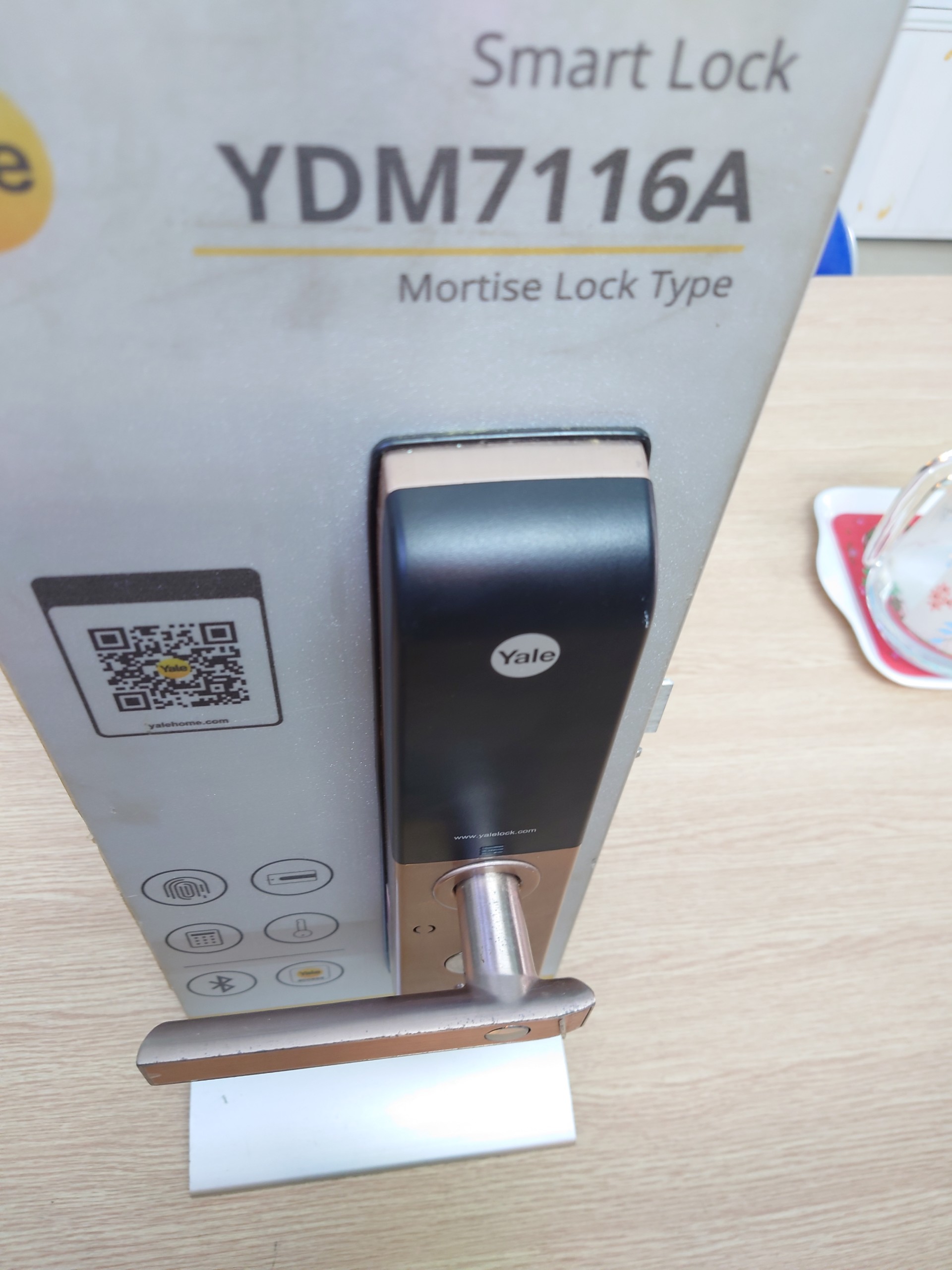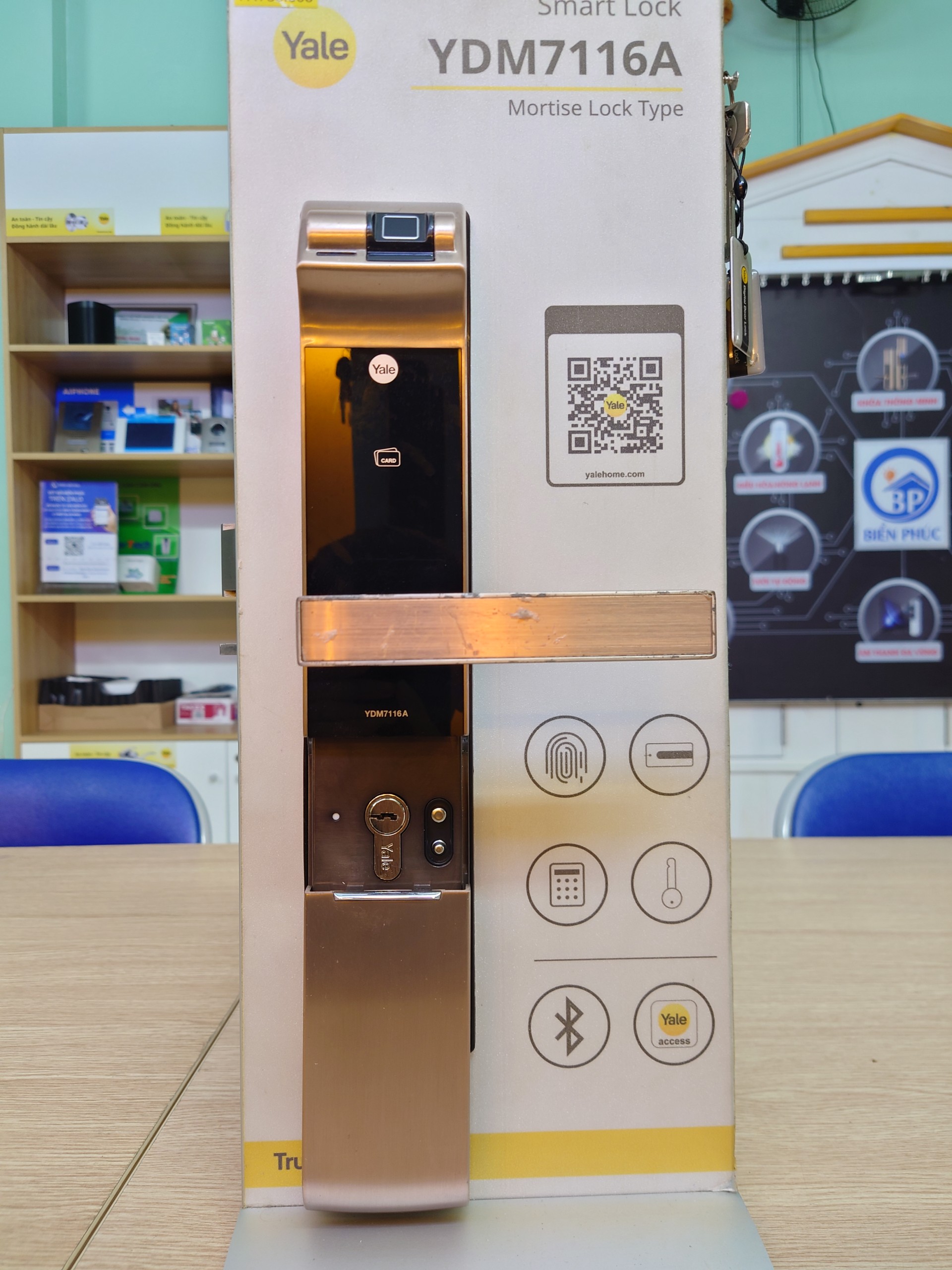YDM7116A mở khóa bằng 5 cách: Vân tay, mật mã, thẻ từ, chìa cơ, Buetooth ( thông qua ứng dụng Yale Access).