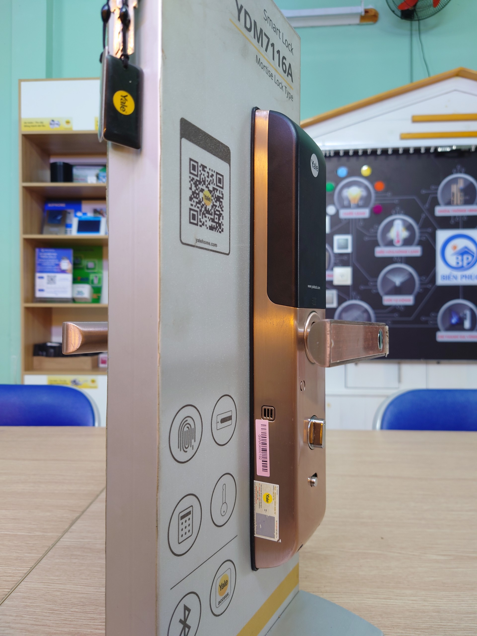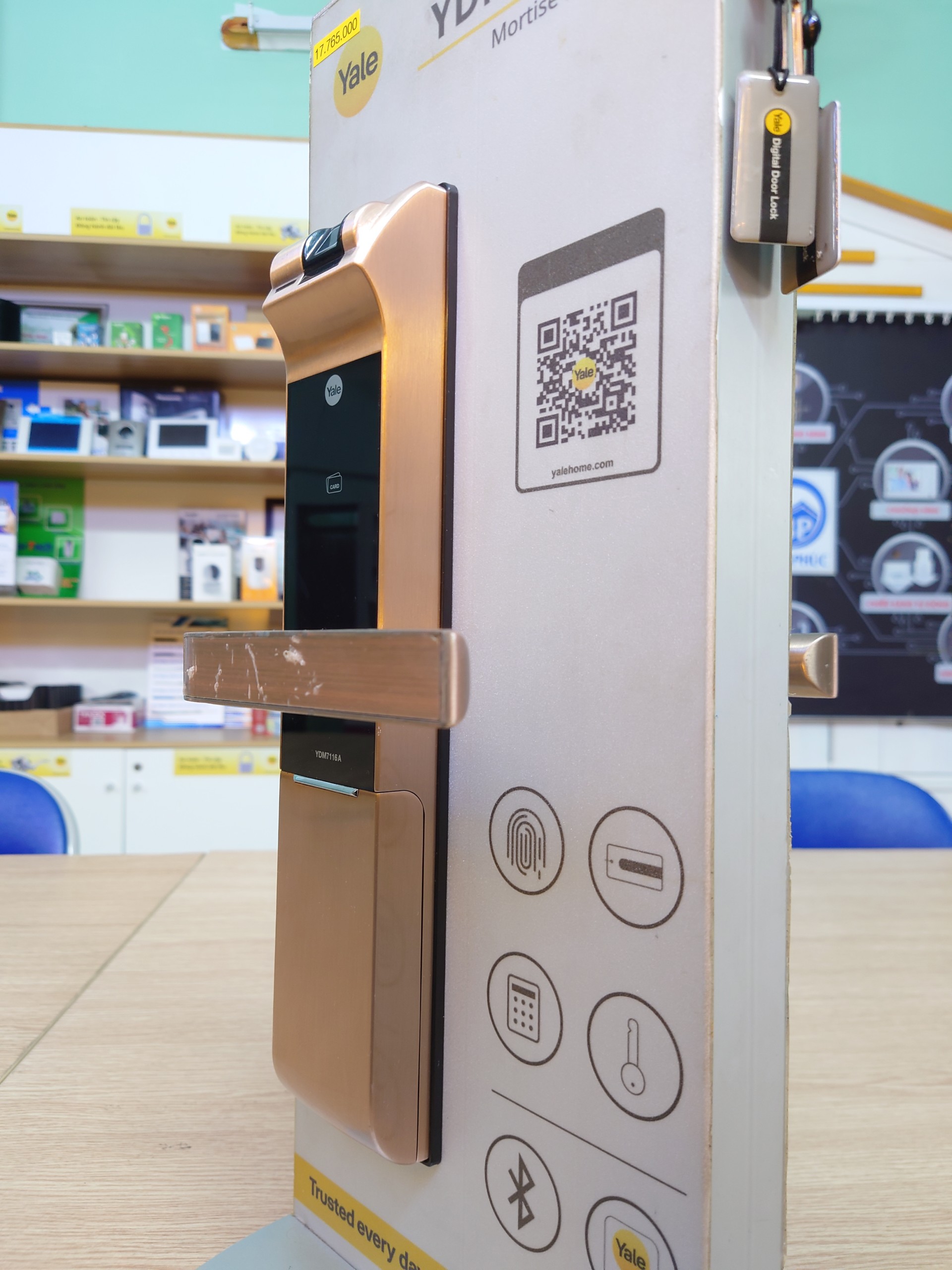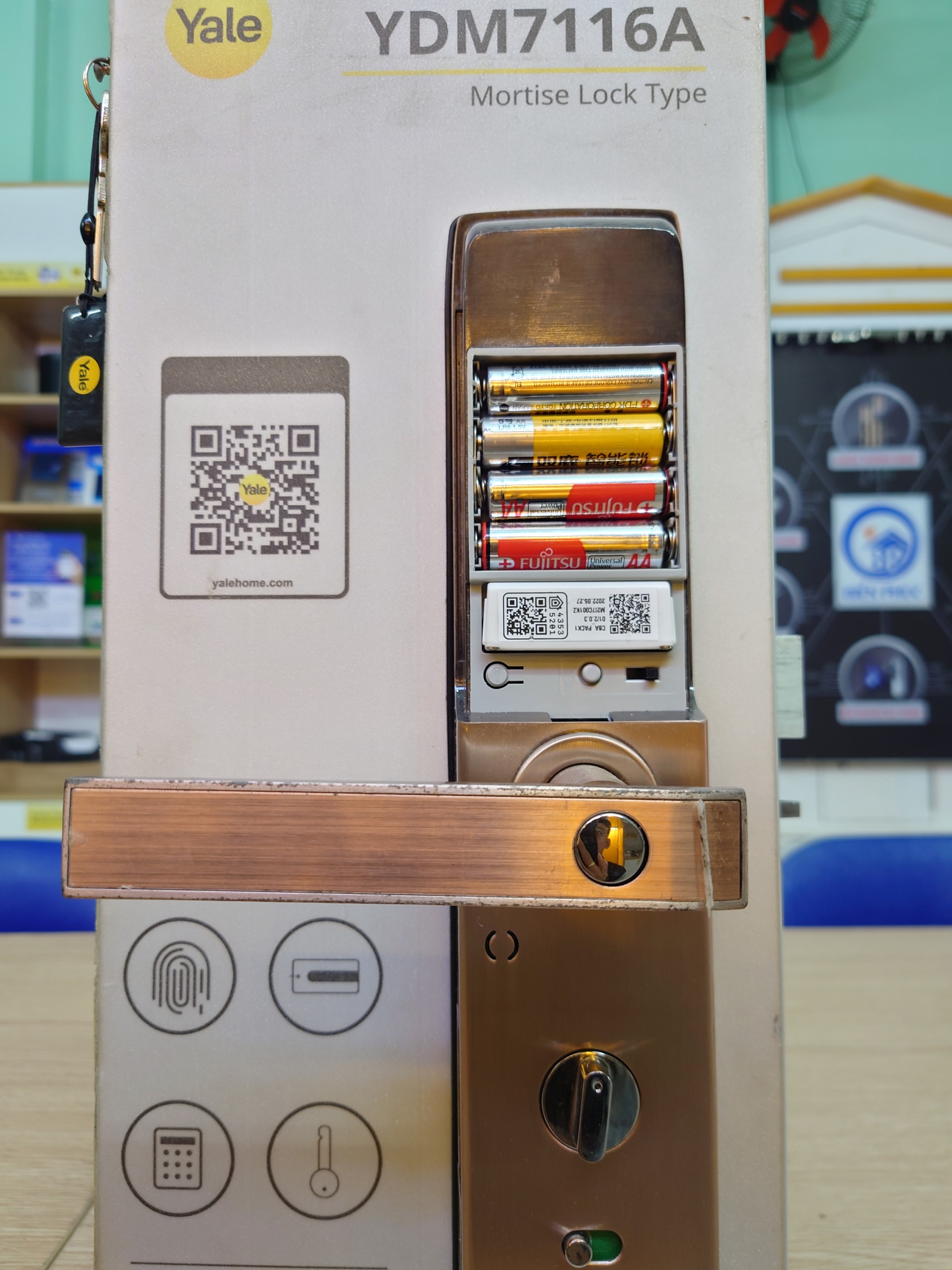 YDM7116A mở khóa bằng 5 cách: Vân tay, mật mã, thẻ từ, chìa cơ, Buetooth ( thông qua ứng dụng Yale Access).